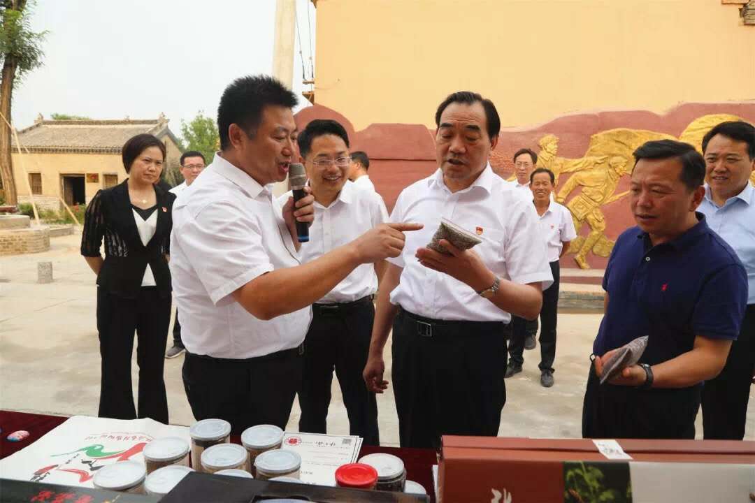 (上图为徐州市委书记周铁根(手持产品)带队考察乡色产品,镇委书记王宝忠(手持话筒)向考察人员讲解公司的各项产品后,产品得到了市县领导的肯定和市委周书记的赞誉。)