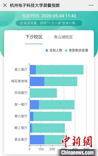 中新网杭州5月8日电 学生可用手机查看食堂实时剩余餐位和各窗口菜品;就餐位放二维码,随时反馈食堂人数;根据历史点菜数据,建立菜品推荐系统……疫情期间,杭州电子科技大学利用大数据建模,推出“无接触餐饮”。