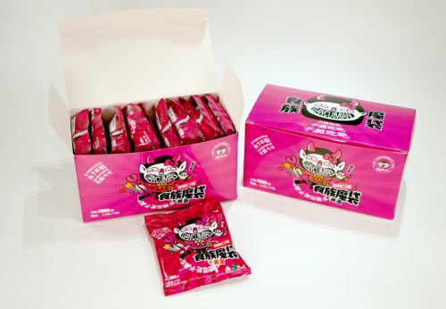 食族人食族魔袋干脆面用料讲究工艺精湛,为保证做出最正宗的美食,食族人深入原产地,配料全部原产地直采,精选优质食材。面饼使用百分百无添加精选小麦粉,采用传统工艺精细研磨,每一口都散发着浓郁麦香。面饼采用精炼棕榈油高温炸制,面饼颜色金黄,口感酥香爽脆。精致调料配上先进表面调料喷涂技术,覆盖均匀,调料与面饼完美融合使得干脆面口味层次丰富咸淡适口,像极了小时候的味道。包装采用萌趣卡通包装,颜色鲜艳吸引眼球,质感高级,传递了有趣、快乐的生活方式和态度。