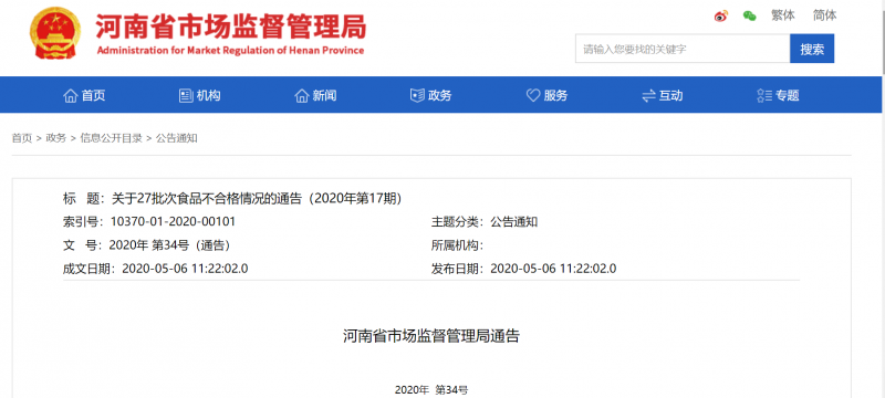 中国质量新闻网讯 5月6日,河南省市场监管局发布的关于27批次食品不合格情况的通告(2020年第17期)显示,标称汝阳县杜康村酒泉酒业有限公司生产的1批次白水杜康酒,酒精度检出值为48.8%vol,标准规定为51.0~53.0%vol。