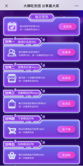 京东超市在满足用户味蕾的同时,当然也少不了各种福利互动。活动期间,用户进入“大牌吃货团”活动页面,选择喜欢的明星进行打CALL,即可获取积分和食力值。活动规则简单易操作,动动手指即可轻松获得积分和抽奖机会。每日签到、邀请好友组队可获得10积分和1次抽奖机会,下单精选好物就能获得100积分及1次抽奖机会,加购精选好物即可获得250积分和1次抽奖机会。用户完成每日任务清单,即可参与转盘抽奖,并可获得京豆、优惠券等超值奖品;当明星食力值达到200万和300万,还可以解锁该明星的专属礼包,将明星签名照、海报、手办等锦鲤大奖带回家。此外,战队积分前100名的队伍还有机会瓜分百万京豆。