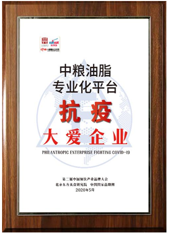 在此次大会上,中粮油脂专业化平台被评为“抗疫大爱企业”称号。面对疫情,中粮油脂积极践行央企责任担当,第一时间复工复产,积极响应国家 “保价格,保质量,保供应”的行动号召,为消费者提供安全、放心的粮油产品,为国人餐桌保驾护航,为社会恢复平稳发展筑建坚实后盾。与此同时,中粮油脂中包装及旗下产品福掌柜餐饮油凭借其过硬的产品质量和独特的品牌价值荣获“最受厨师喜爱的品牌”荣誉称号。中粮油脂中包装相关领导表示:“品牌建设和品牌价值的培养是中粮集团始终坚持的企业发展内驱力之一,我们希望通过我们的努力,能够把更多营养、健康、优质的产品奉献给广大餐饮企业及消费者。通过自主创新和民族品牌的建设,贯彻习近平总书记提出的中国产品向中国品牌转变的重要指示,向建设质量强国的宏大目标迈进”。
