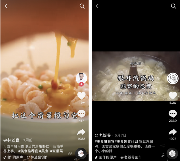 @老饭骨 是抖音上深受网友们喜爱的一位美食创作者,此次活动中,@老饭骨 账号背后的郑秀生和孙立新两位国宴大师,也分享了他们曾在国宴上制作的银耳汽锅鸡、宫保鸡丁、椒盐猪排等美食做法。