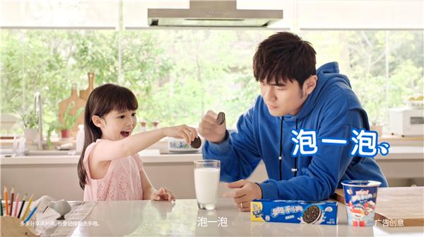 在奥利奥电视广告中,周杰伦也以爸爸的形象完美诠释了全新的品牌精神。短片中的他化身魔术先生,面对小女儿仅剩最后一块奥利奥的难题,周杰伦以魔术手法玩转奥利奥经典“扭舔泡”吃法,变出了“永远也吃不完的奥利奥”,伴随着经典歌曲《甜甜的》在耳边响起,爱玩会玩的周杰伦不仅让可爱的小女儿展颜开怀,也让观众看到了天王巨星玩心大开的另一面。