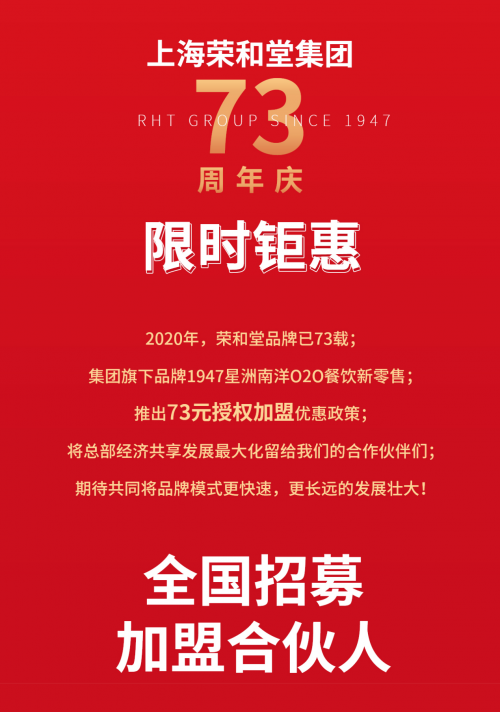 今年,正逢荣和堂品牌73周年庆,总部提出经济共享发展最大化,多项举措助力疫情下餐饮消费经济复苏,餐饮投资人改革良性成长;