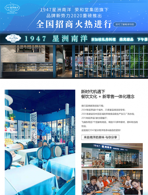 1947星洲南洋是荣和堂集团旗下的聚餐饮·燕窝下午茶·新零售专柜为一体的主题餐厅,燕窝主题,海派元素,中国表达。