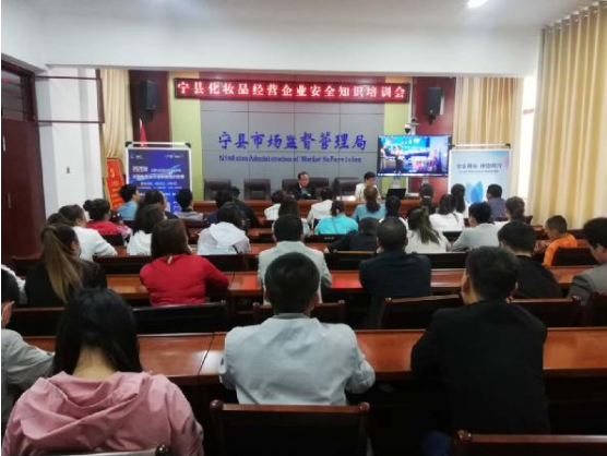 在全国化妆品安全科普宣传周活动开展之际,为进一步增强化妆品经营使用单位法律意识,提高从业人员化妆品经营使用管理水平,规范化妆品经营使用行为。6月1日,宁县市场监管局召开了全县化妆品经营企业负责人责任约谈培训会。县局党组书记、局长杨峰出席会议并讲话,局党组成员、副局长张廉君主持会议。药品稽查局、药械化股工作人员,各乡镇市场监管所业务主办,全县大中型以上化妆品专营企业及超市化妆品专柜负责人共计80余人参加了会议。