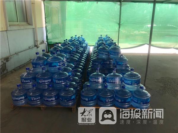威海蝴蝶泉生产厂家院内堆放的大桶水