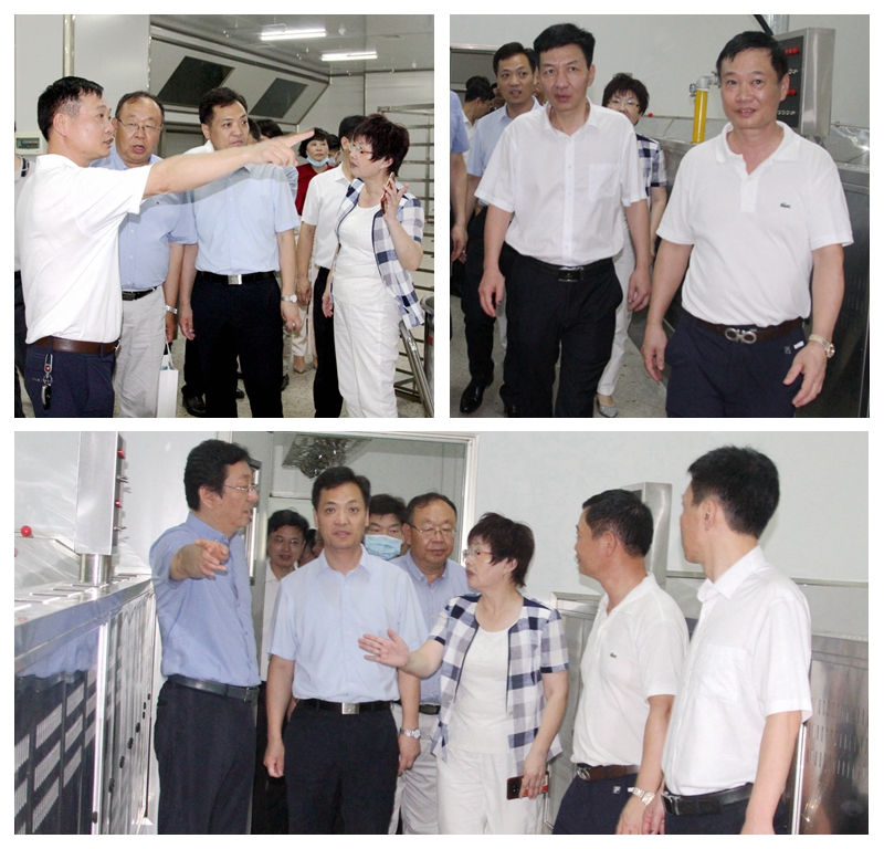 张辉一行走进黄家月生产基地,在黄家月公司董事长黄庆强的引领下,参观高标准现代化生产基地、10万级无菌净化车间和全空调GMP模范车间。