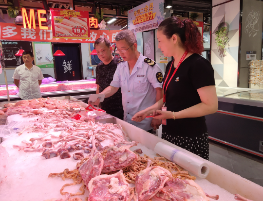 6月16日下午,望江县雷池市场监管所对主城区农贸市场和商场超市开展冷冻食品专项检查工作。