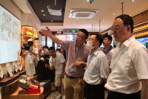 领导一行均对海文铭助推福州非物质文化遗产“佛跳墙”国宴菜肴冷冻产品全国首例走向海外市场,宣传福州特色美食文化名片、建设福州佛跳墙文化体验馆创新推广模式给予了充分肯定。