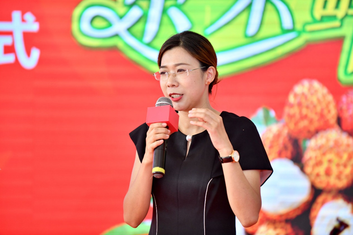 省农业农村厅一级巡视员牛宝俊为黄田荔枝的首摘仪式进行了精彩的致辞,紧接着,黄田荔枝协会会长阮忠敢在欢迎词里对黄田荔枝与京东物流的战略合作充满了信心,京东物流深圳总经理马伟在致辞也表示了对黄田荔枝的期待。