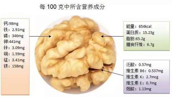 中国老年保健协会膳食指导专委会名誉会长孙树侠也强调,核桃中所含的Ω3脂肪酸,是提升脑营养的最佳补给,因为其中DHA甚至可以对大脑智力有深度影响,并且核桃是Ω3含量最高的坚果。她说,有研究小组曾经做过一项科学实验,女性从备孕开始直到分娩之后,持续补充DHA含量比较高的坚果或者其提取物,所出生的孩子智商能达到130-149之高。