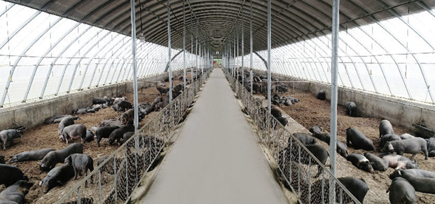 养殖全程无污染。独创生物工程菌群,通过自主知识产权的生物工程菌技术,可以规模化发酵如秸秆、果蔬残次品、酒糟等农业废弃物作为饲料,大幅提升当地农业废弃物的循环利用效率,降低养殖成本。发酵床随猪出栏后作为有机肥还田,实现种养循环,还可以改善农田土壤结构,提高单位农田产出率。而深度沉浸在有益菌环境中的猪只,肠道中有益菌群为绝对优势菌群,能够有效抵抗外来病菌。