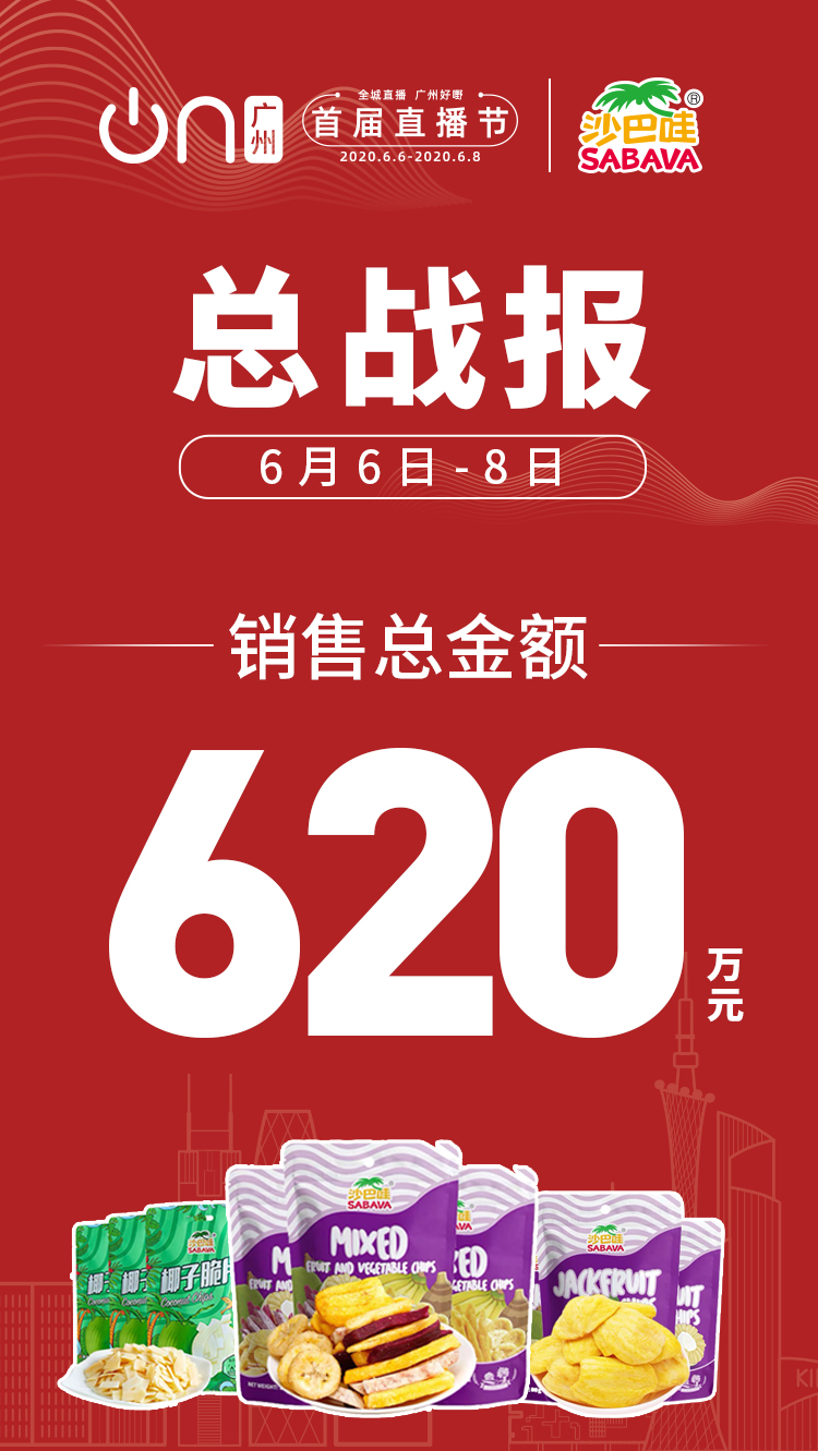 作为在进口果蔬干领域深耕21年,连续五年荣登中国十大进口食品品牌榜的沙巴哇品牌,也受邀参与此次直播盛世,据悉,沙巴哇参与广州主会场和从化分会场的直播,在三天的时间,最终以620万元的销售额为此次直播节交出了满意的答卷。