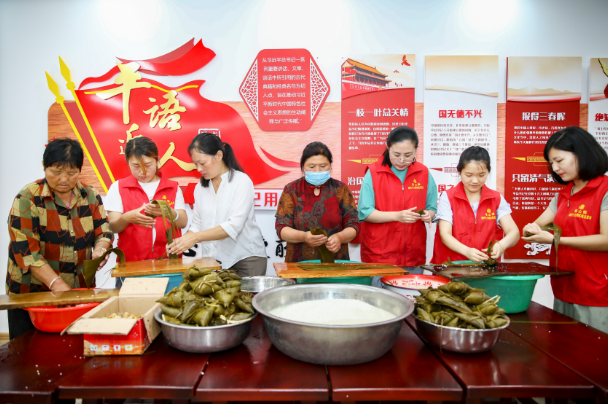 端午节将至,江苏省连云港市赣榆区塔山镇举行迎端午活动,邀请该镇部分脱贫户与留守儿童一起包粽子,做香囊,喜迎传统佳节。