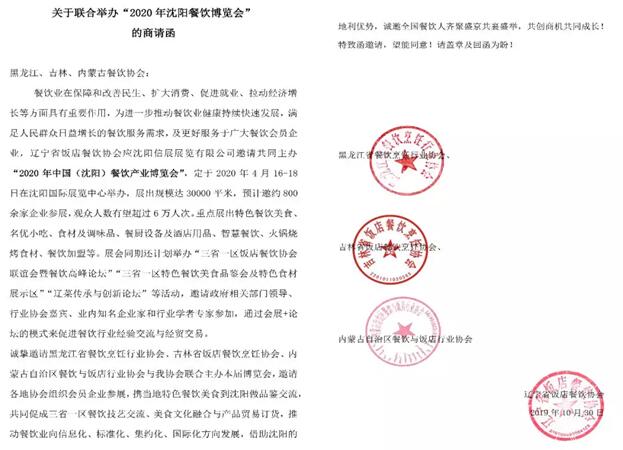 “黑吉辽蒙”三省一区餐饮行业协会将作为2020第7届中国(沈阳)餐饮产业博览会的主办单位加入到第7届沈阳餐博会的组团参展/参观、展会同期活动、会员企业供需商贸对接等系列活动,联手协作共同推动三省一区餐饮业的持续繁荣和高质量发展,为疫情后行业复苏做出重要贡献!