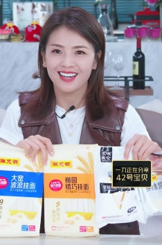 寿星刘涛在直播中向刀客们介绍陈克明面条是自己代言的品牌,日常生活中自己家人及身边好友都经常购买,好评无数。并在直播间向大家推荐了进口澳麦、劲道爽滑的陈克明精巧椭圆面、陈克明大宽波浪面、陈克明多维营养小面(赠品)和陈克明低筋蛋糕粉(赠品)。