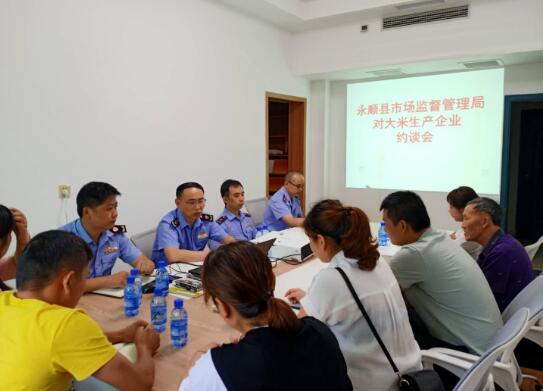 为整顿和规范生产经营秩序,推进粮食及相关制品“百日”整治行动持续深入开展,7月13日,永顺县市场监督管理局召开大米生产企业集中约谈工作会,盛世御品有限公司、松柏溪州米业有限公司等7家大米生产加工企业(小作坊)负责人参加会议。