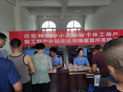 为全面贯彻落实旗委、旗政府统筹疫情防控工作和恢复经济社会发展秩序的决策部署,支持中小微企业、个体工商户复工复产健康发展,确保政策措施落到实处、见到实效。按照《达拉特旗人民政府办公室关于印发达拉特旗新冠肺炎疫情期间中小微企业个体工商要和复工复产补贴方案的通知》(达政办发【2020】30号)文件的要求,安达所从2020年7月9日--7月20日对辖区内流通领域、餐饮领域的360家个体工商户发放复工复产补贴,其中餐饮个体工商户254家、流通个体工商户106家,发放补贴共计43.3822万元。