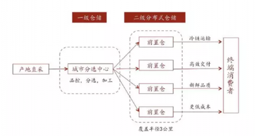 前置仓开设在离消费者最近的地方、辐射周边1-3公里区域,不仅能降低成本,还能提升消费者体验,下单后30分钟即时送达,保证商品到达消费者手中时,还是最新鲜合适的状态。
