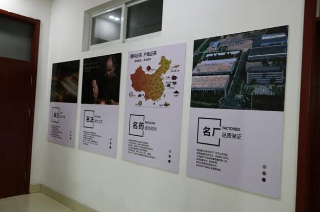 进入工厂的办公楼,浓厚的文化气息扑面而来。巍巍江山万里长城的铜画,九曲黄河万里沙的壁画、帝王诗词《沁园春·雪》、山水国画观海听涛。人一旦能够做到虚怀若谷,便能够汇集百河而成为汪洋;人如能做到无欲无争,便能如峭壁一般,屹立云霄。每一位御品膏方人肩负使命,不仅要做出好的产品,更要精益求精,传承中医药文化。