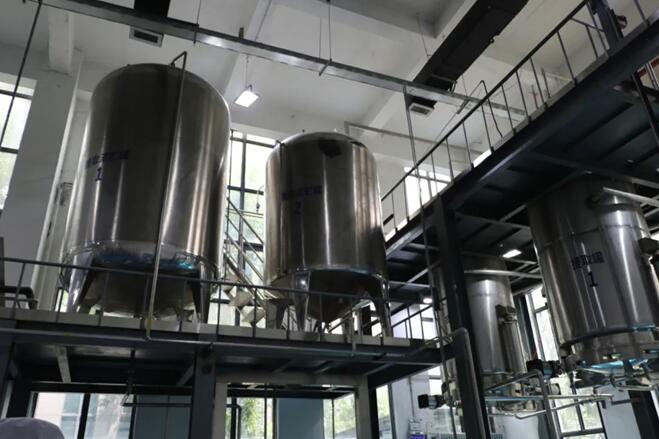 低压浓缩器所处场所是食品级洁净区,从顶端的目镜可观察浓缩器内部情况,内部通过自动搅拌器来搅拌,熬膏完成后会通过物料管道进入罐装区,熬膏全程都是密闭的环境。生产结束后,浓缩器内部装有喷淋头,可以通过自动喷淋装置和搅拌器进行自动清洁,而且可以把纯净水加热到100度进行杀菌,并定期用10%的碳酸钠溶液清洁整个罐器和管道。