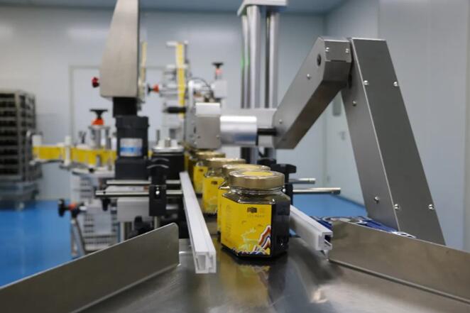 膏体经过管道进入罐装区,瓶体通过传送带从洗瓶车间进入罐装区,全程都是机械化无人工操作,避免细菌的产生。