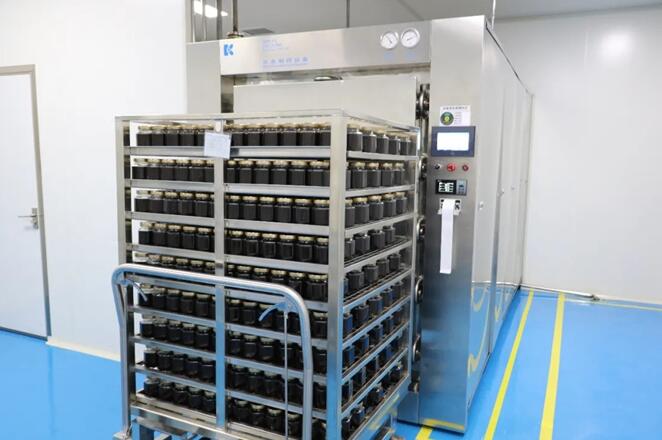 罐装完成的产品通过传送带进入灭菌车间,在105℃下保持30分钟,进行全自动蒸汽灭菌。御品膏方的灭菌柜全部通过PQ验证达到药品级灭菌标准。经过高温灭菌的产品,可以长期稳定存放。
