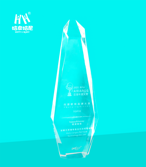 在2020年08月19第二十三届亚洲宠物展准时在上海新国际博览中心拉开了帷幕,下午2:30分隆重举行的PFA AWARDS颁奖盛典上,玫斯江苏宠物食品科技有限公司旗下创新品牌:哈皮哈尼 (Happy & Honey) 在众多品牌甄选中脱颖而出,荣获2020PFA亚宠年度大赏“年度新锐品牌大奖”。