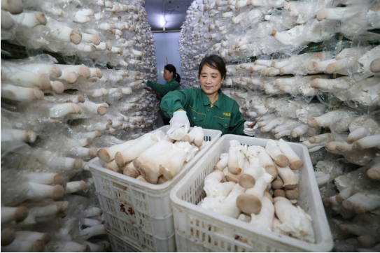 近年来,江苏连云港市赣榆区积极调整农业产业结构,大力发展食用菌种植产业,推广“公司+专业合作社+基地+农户”模式,通过项目企业与建档立卡贫困户签订协议,开展食用菌种植项目,为贫困户提供原料和技术,定期回收食用菌产品,带动群众增收致富。