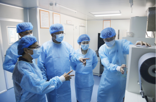 与会领导和专家观摩绿康元医学营养中心自动化设备、个性化配置及操作。