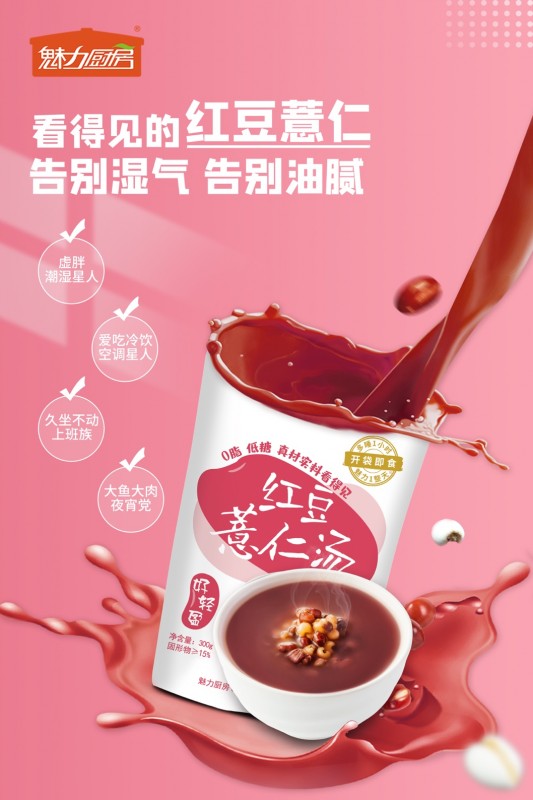如果你长期坐在电脑前,那么它可以帮助你为身体减负;如果你是时尚潮人,魅力厨房红豆薏仁汤的外包装大气活泼,单品潮拍在家也能照出来;如果你在严格管理身材,魅力厨房红豆薏仁汤可以适当补充营养,帮助你把握好膳食结构。魅力厨房红豆薏仁汤不仅仅有着养生的意义,更带来了一种看得见、有温度、可拥有的生活方式。这个炎炎夏日,就让魅力厨房红豆薏仁汤为忙碌的生活带来一丝清甜吧!