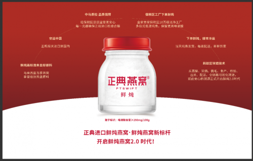据了解, 正典进口鲜炖燕窝优选好源头,高品质原料的燕窝是基础。正典进口鲜炖燕窝只选正典马来西亚燕窝加工中心出品的拿督级燕盏作为鲜炖原料,保障每一瓶鲜炖燕窝的高品质,确保消费者到手的是真正好燕窝炖煮的鲜炖。正典进口鲜炖燕窝在正典自有杭州保税区工厂下单鲜炖,保税区顺丰冷运、冷鲜直达。相比以往鲜炖 1.0 时代(鲜炖工艺和冷运配送),在此基础上实现了燕窝原料新鲜,大大缩短从燕窝采摘到入口时间,真正实现鲜料、鲜炖、鲜运、鲜食!