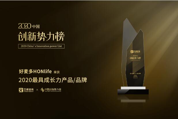 HONlife好麦多凭借其健康生活方式的理念以及创新食品制作工艺,俘获众多国人的胃,此次获得2020中国创新势力榜“最具成长力产品/品牌”大奖,是对其已取得优异成果的认可!
