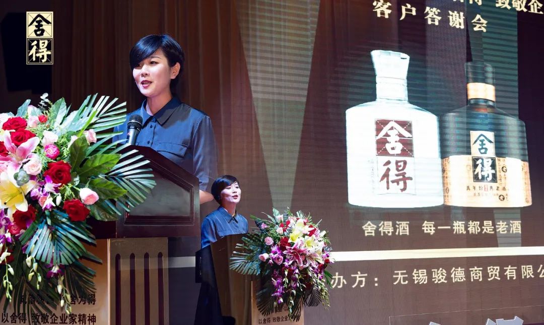 在无锡推介会上,骏德商贸酒业有限公司总经理朱青女士发出“以舍为得、共进共赢共享,共同创造舍得的美好明天”的愿景;