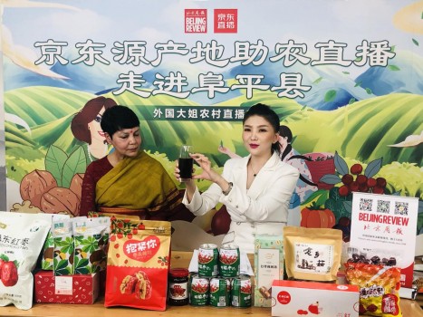 9月15日,京东直播“京源助农”计划携手北京周报,走进河北省阜平县骆驼湾村,“京源助农”是京东直播频道开展的全国源产地助农直播。本次携手北京周报走进阜平,同时携手苏德什娜•萨卡(Sudeshna Sarkar)作为《北京周报》的外籍专家,在此次京东直播中“出圈”着实过了一把主播瘾。