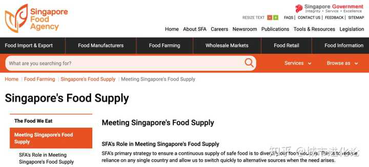 新加坡的食品大部分依赖于进口,因而在进口检疫和食品安全管理上特别严格。主要管理部门为新加坡食品局(SFA),负责保障初级食品和加工食品从生产到销售过程的安全。主要的食品安全法规是食品销售法及其它食品相关法规。