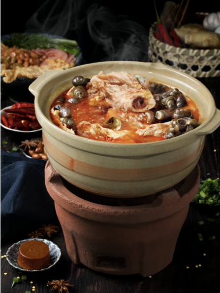 闲物螺蛳粉之所以能快速俘获吃货们的味蕾,在于其古法熬制了18个小时的固体高汤。众所周知,螺蛳粉的灵魂在于汤底,汤底决定了一碗螺蛳粉是否好吃和正宗。
