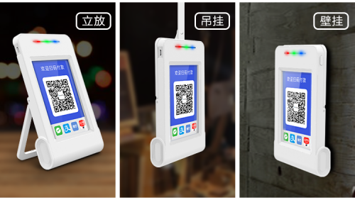 R1发光收款码牌内置LED,点亮商家收款码,可桌摆、可挂置,形态随心,摆放随意。