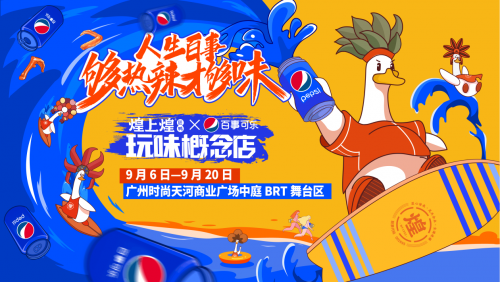 今年9月,老字号酱卤品牌煌上煌携手国际潮牌百事可乐联合打造“玩味概念店”,这组“饮+食”CP在广州掀起了一阵“新势力”的热潮。
