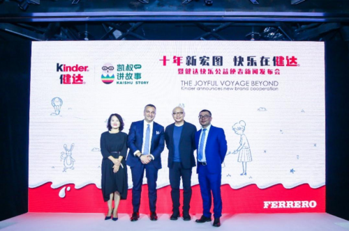 2020年9月29日,费列罗旗下品牌健达在进入中国十周年之际,于上海朵云书院举办“十年新宏图 快乐在健达”暨健达快乐公益使者新闻发布会。会上,健达正式宣布中国知名儿童教育、儿童内容领域影响力人物凯叔,成为品牌在华首位“健达快乐公益使者”,并携手“凯叔讲故事App”联名推出以珍稀动物为主题的健达限量天猫礼盒。天猫大快消零售行业负责人秋玥女士、费列罗中国区总经理马如城(Mauro De Felip)先生、费列罗中国健达品牌市场总监夏勤男先生出席活动,并与“健达快乐公益使者”凯叔一同开启健达在中国的下一段十年新征程。