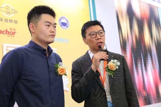 豆果美食创始人兼CEO王宇翔先生,良润烘焙、顶焙良品品牌良润公司副总经理 朱一鸣先生接受记者采访