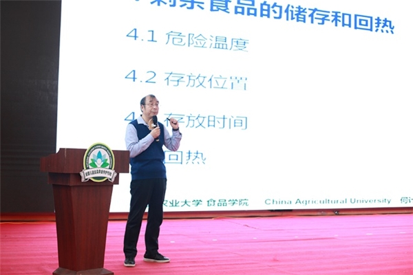 仪式后,备受家长们期待的《食品制作的安全控制》专家课堂开课啦!何计国教授通过幽默风趣的语言为家长们分享了日常生活中选购安全食品的实用小技巧。针对大多数家庭容易忽视的家庭食品安全问题,何教授深度讲解了制备食物时需要特别注意的食品安全问题,如厨具卫生问题、热加工食物应注意温度和时间保证充分杀菌、剩饭菜的储存和回热注意事项等。