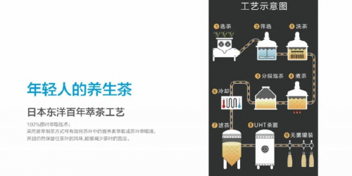 清泉出山精挑细选上等的桂林丹桂,清香淡雅,茶色清澈透亮,其中富含的矿质元素、黄酮及可溶性糖和性蛋白等,具有养生润肺、美白肌肤和止咳化痰等功效。特别设计的两个口味,其一搭配乌龙茶中的极品——安溪乌龙,味道甘醇鲜美;其二,融合茉莉绿茶,花香怡人,轻松与愉悦不请自来。困茶想年轻人所想,采用麦芽糖这种天然的高级代糖,由淀粉水解制成,不易被人体吸收,在保证口感的同时,不会对人体带来负担,长期饮用不会引起龋齿,血糖的变化,做到真正的0糖0脂肪。源自日本东洋的百年萃茶工艺,100%原叶萃取,采用首萃制茶方式可有效将茶叶中的营养素萃取成茶叶萃取液,这样在保住茶味的同时又减少苦涩,即便喝不惯茶的人,也能舒适享受。