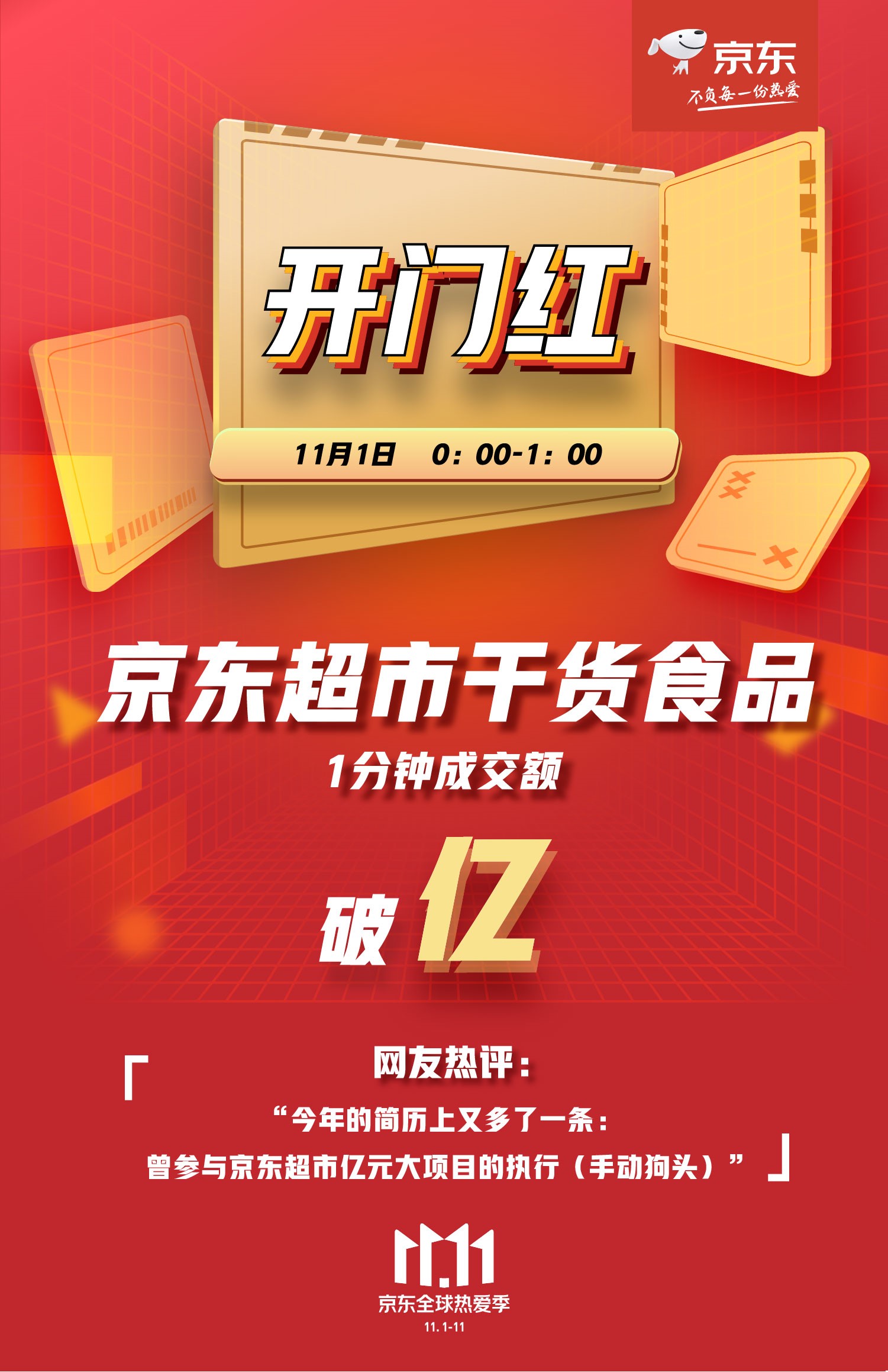 2020京东11.11全球热爱季火热开启,京东超市各品类销售业绩再创新高!11月1日开场1分钟,京东超市干货食品成交额即破亿,10分钟,成交额超过去年同期6倍!11.11,主场在京东!今年以来,居民消费向线上转移的趋势明显,同时呈现出“轻快”生活的消费趋势,减脂轻食、营养速食产品销售火爆。