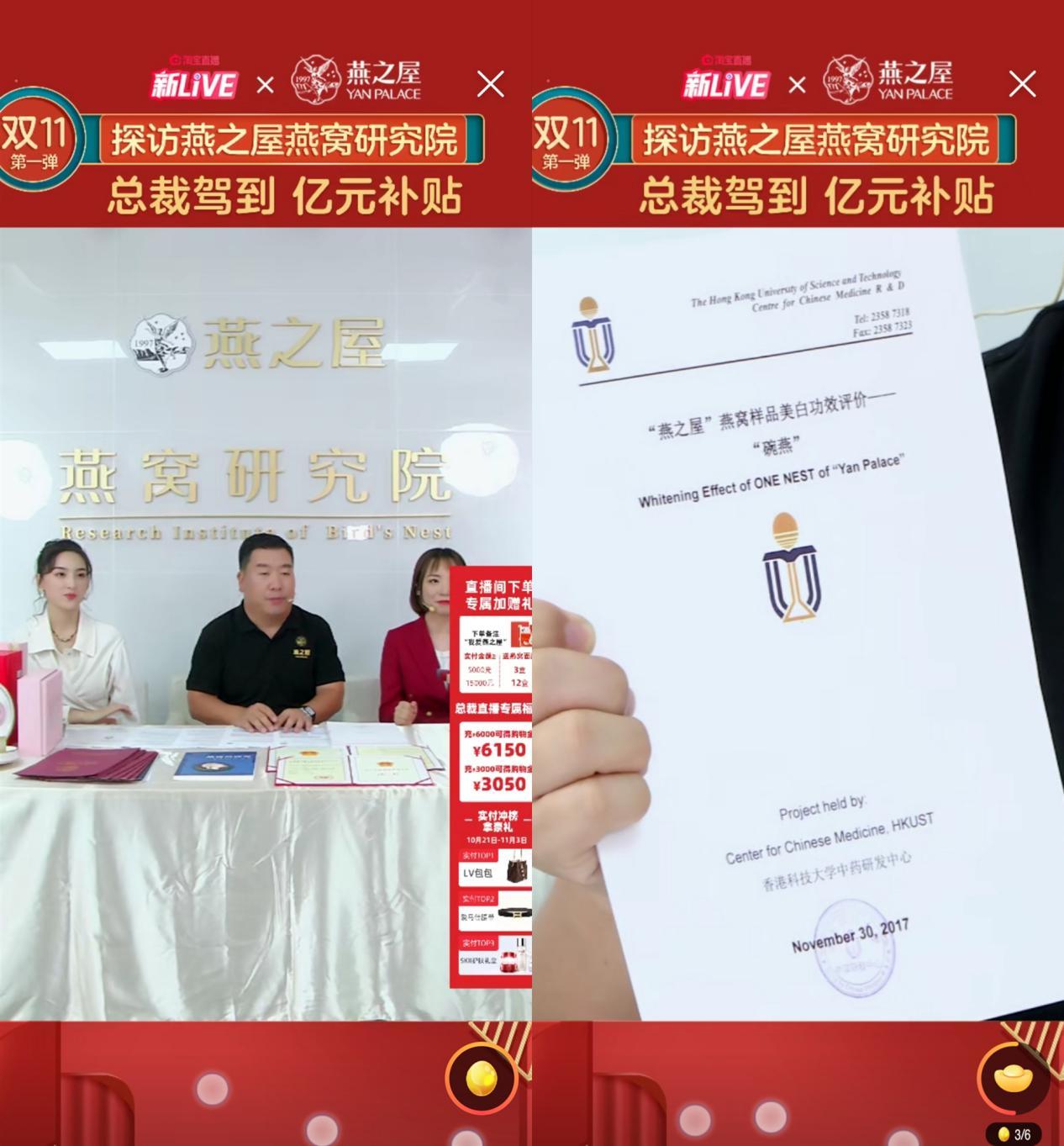 李有泉向消费者释义:不是燕窝贵,是您的健康更珍贵,燕窝应该是“珍贵”的“贵”。 一旁的主播也补充,燕之屋爆款燕窝在双11的价格低至44元/瓶,对比奶茶、咖啡更划算,也更具健康价值。所以,燕窝不贵,但是很珍贵。
