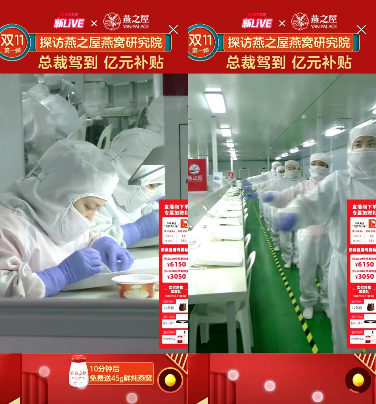 图:燕之屋总裁李有泉光临直播间,带KOL实地参观透明工厂