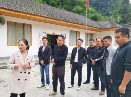 在绥山镇荷叶村村委会参观,认真听取该村负责人介绍