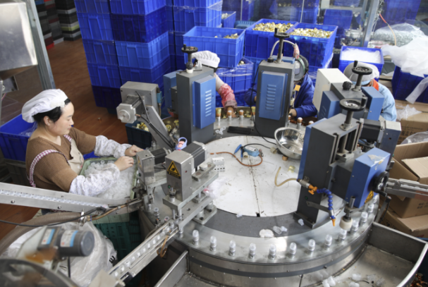11月7日,江苏省连云港市赣榆区塔山镇一家瓶盖加工企业工人在生产外销瓶盖。近年来,江苏省连云港市赣榆区大力发展瓶盖加工特色产业。全区80多家注塑瓶盖加工企业,年加工各类酒瓶盖10亿多只,产品远销全国20多个省市,带动周边6000多人就业。